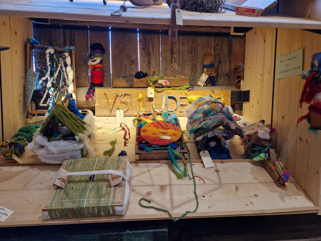 Im "gmeiner huus" haben wir alte, aus Holz gemachte Gegenstände gesehen. Auch Schafwolle war dabei.“